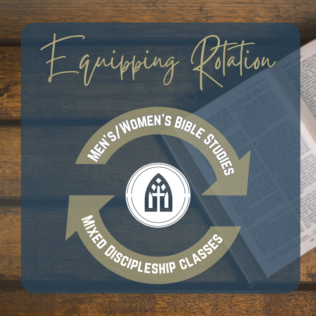 Our Wednesday adult equipping schedule rotates back and forth between times of Men’s/Women’s Bible Studies and then times of mixed equipping classes.