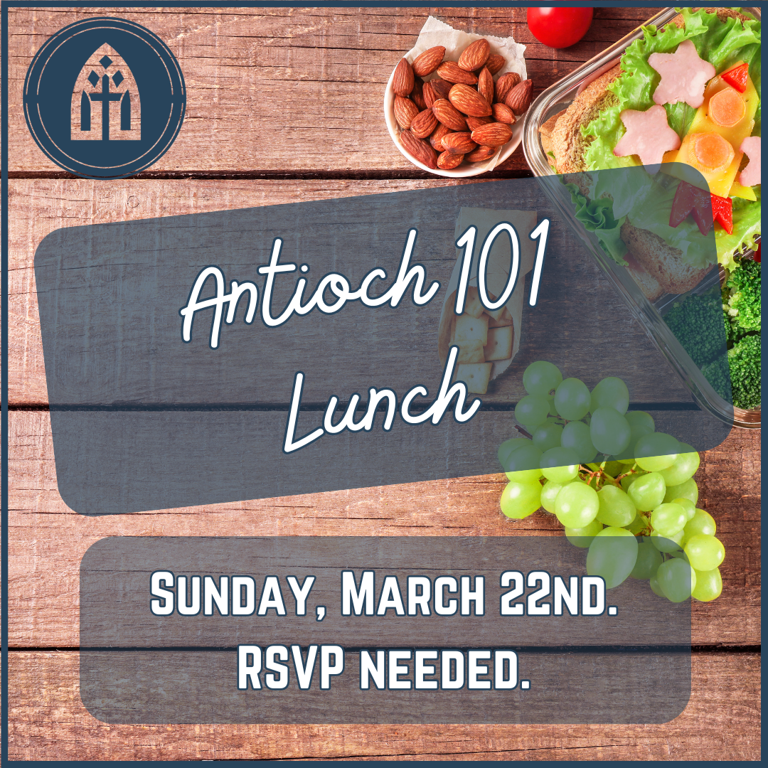 Our Antioch 101 Lunch is the first step of our Membership Process. It is for all those who are interested in hearing more about Antioch Church. In it, we will share Antioch’s story, vision, and values. We will also answer any questions you have about Antioch Church as you discern if this is the local church for you to covenant together with.